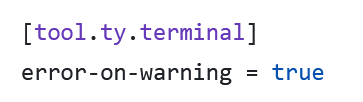 Eventually we also decided to mark ty warnings as errors that would fail the CI. This is easily achieved by setting this in your pyproject.toml: